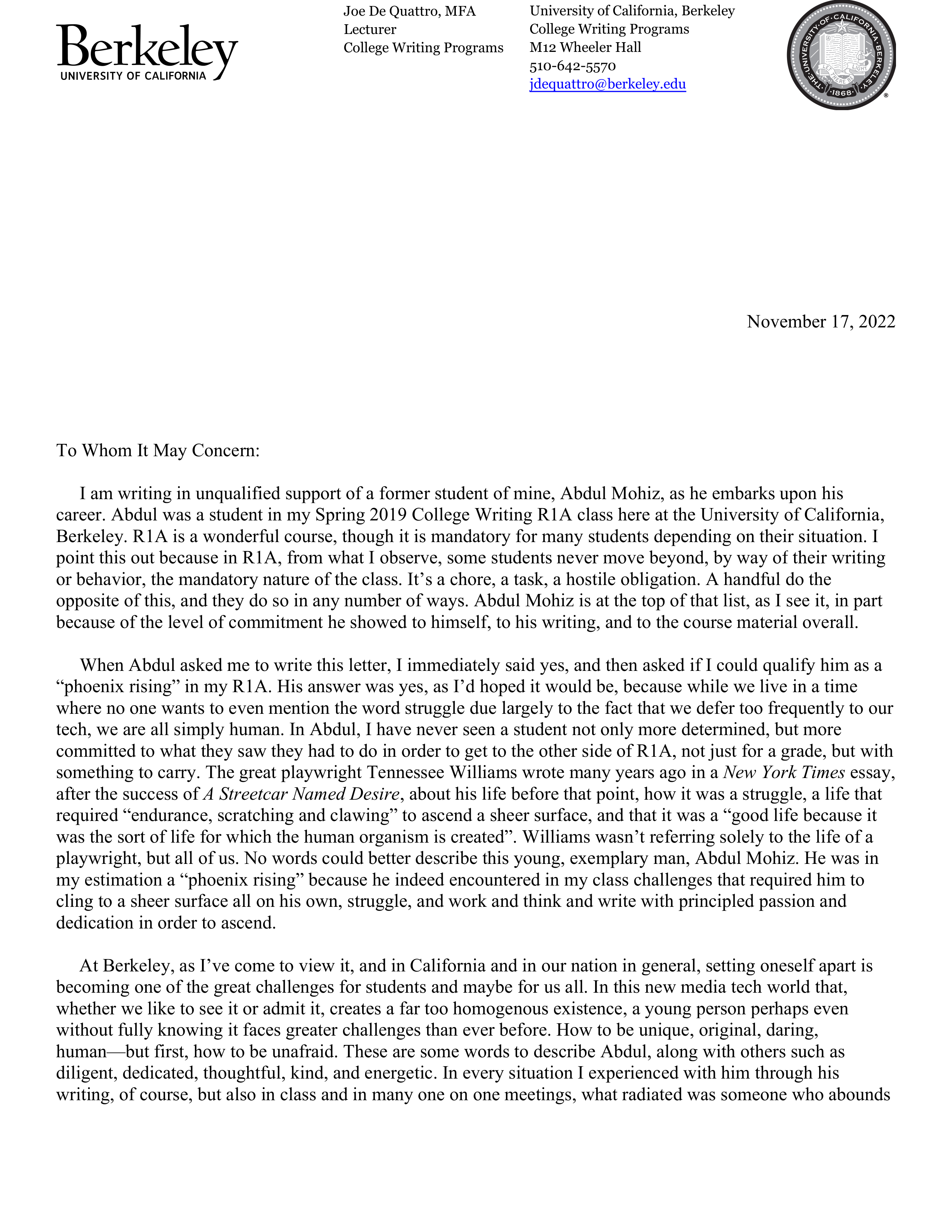 My name is Abdul Mohiz (spelled ΨΉΨ¨Ψ―Ψ§ΩΩ ΨΉΨ² and pronounced Abdul Mohiz). I am the only child and I come from a low income household. Being born in Pakistan and migrating to the United States as a two-year-old with my mother while my father working day and night taught me the importance of hard work. My mother being a homemaker taught me the values of life. Being an only child, I was to fend for myself and it resulted in me becoming the first in my family to attend college, making me a first-generation college student.
